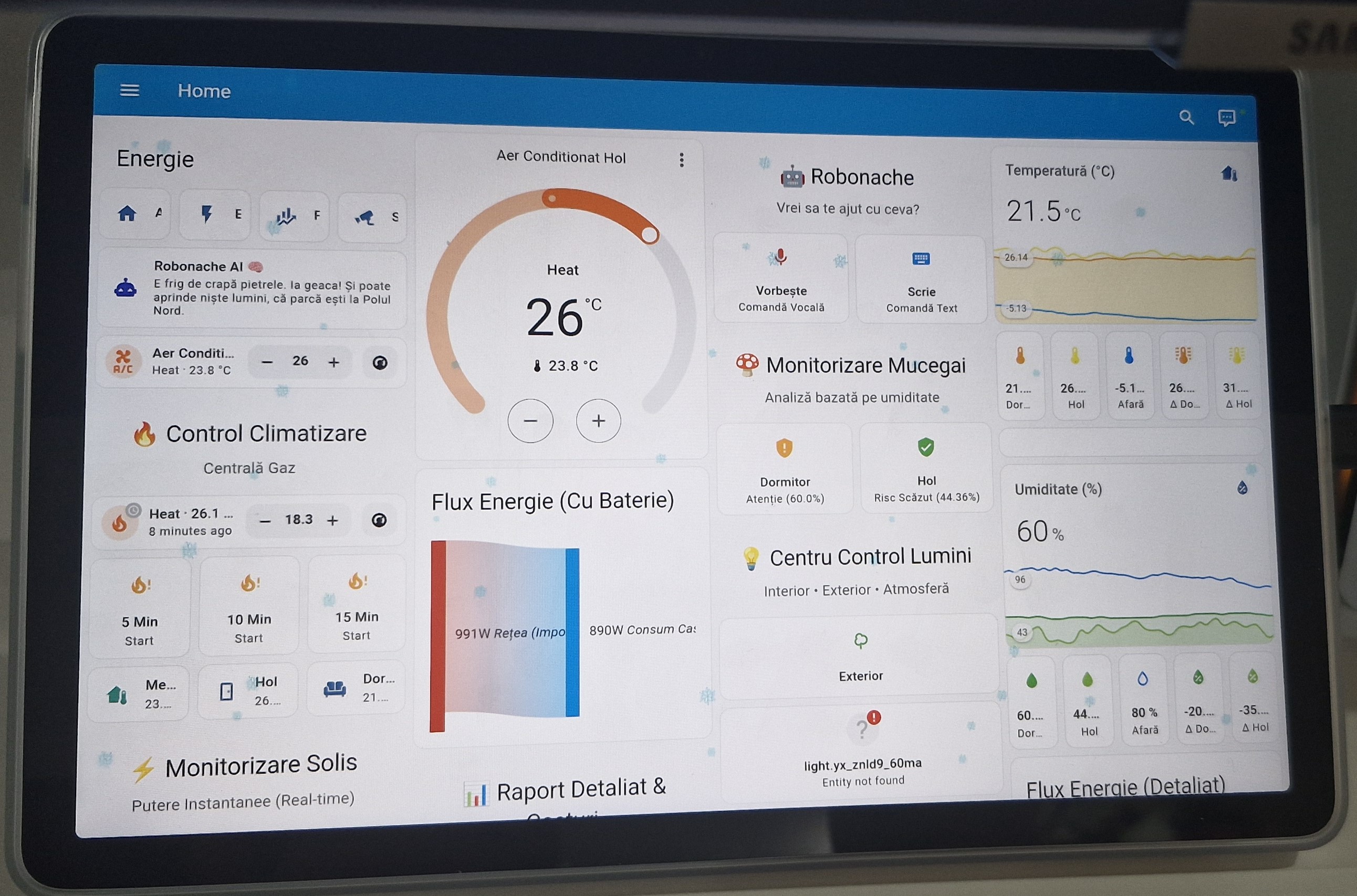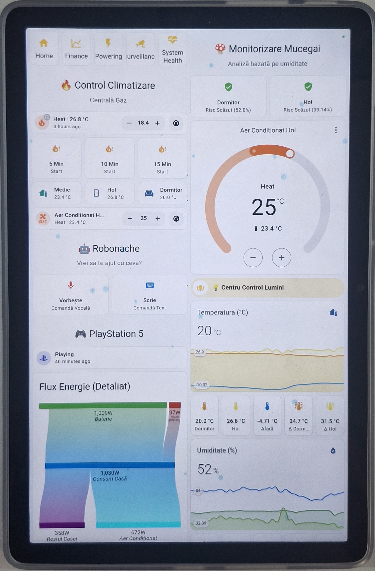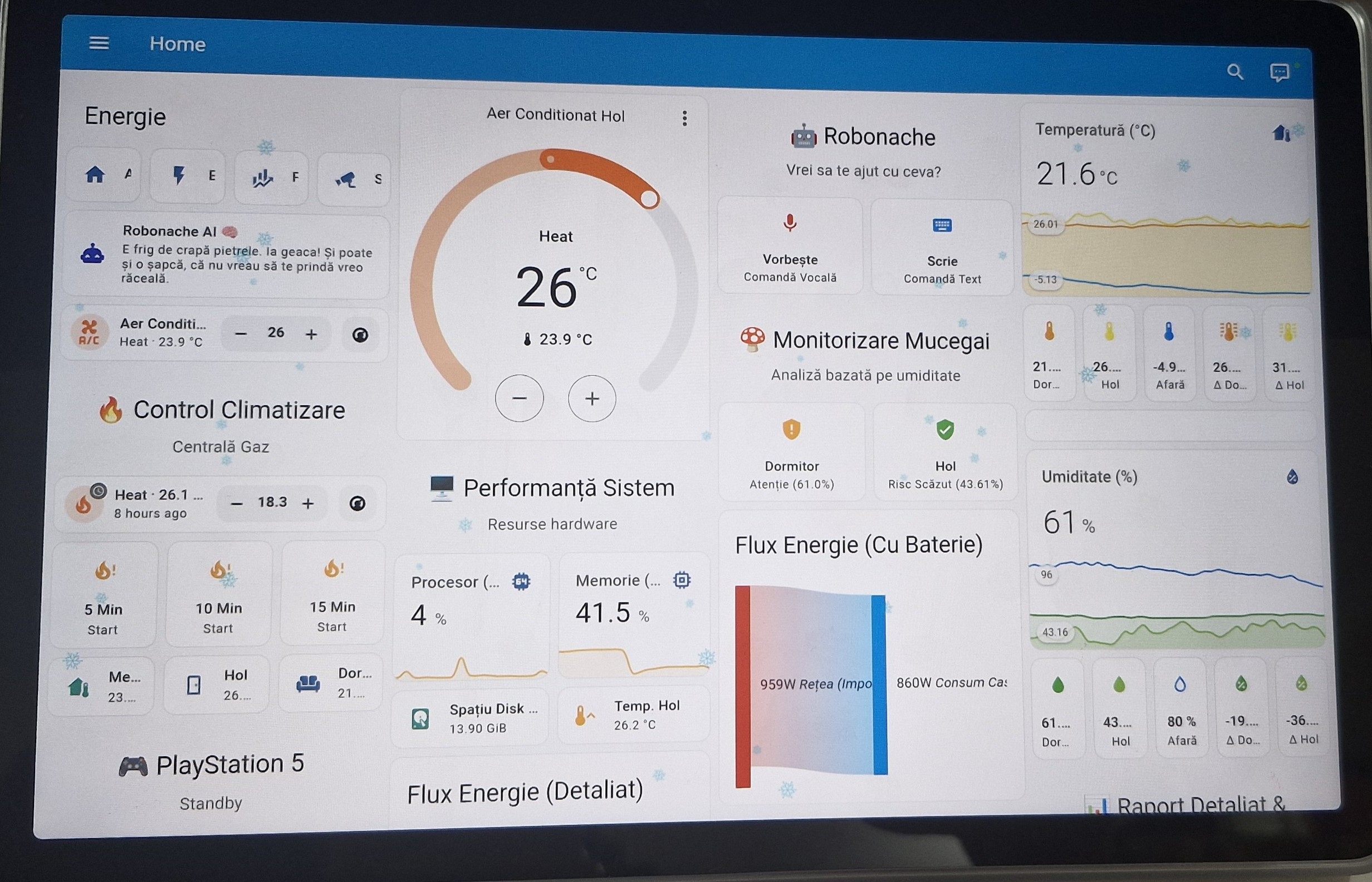 Deschide Pagina → 🌡️Control centrală, aer condiționat, risc mucegai și asistent vocal.