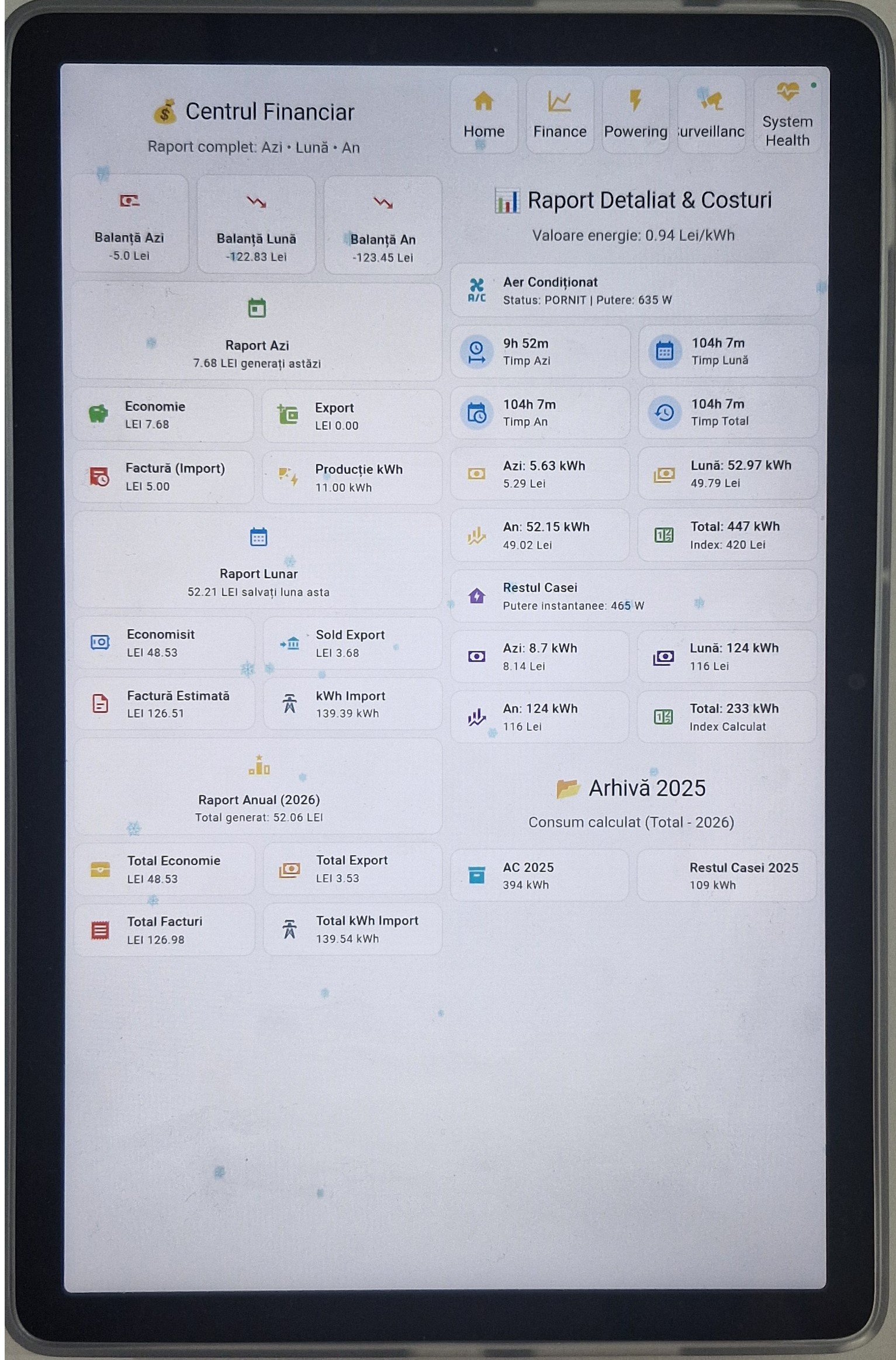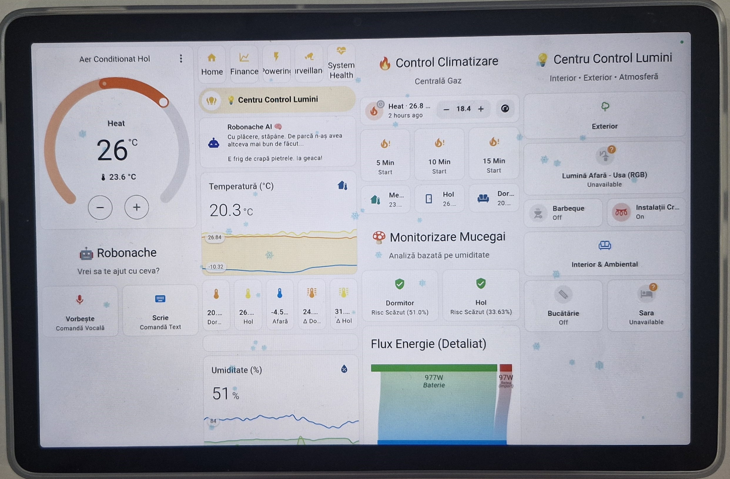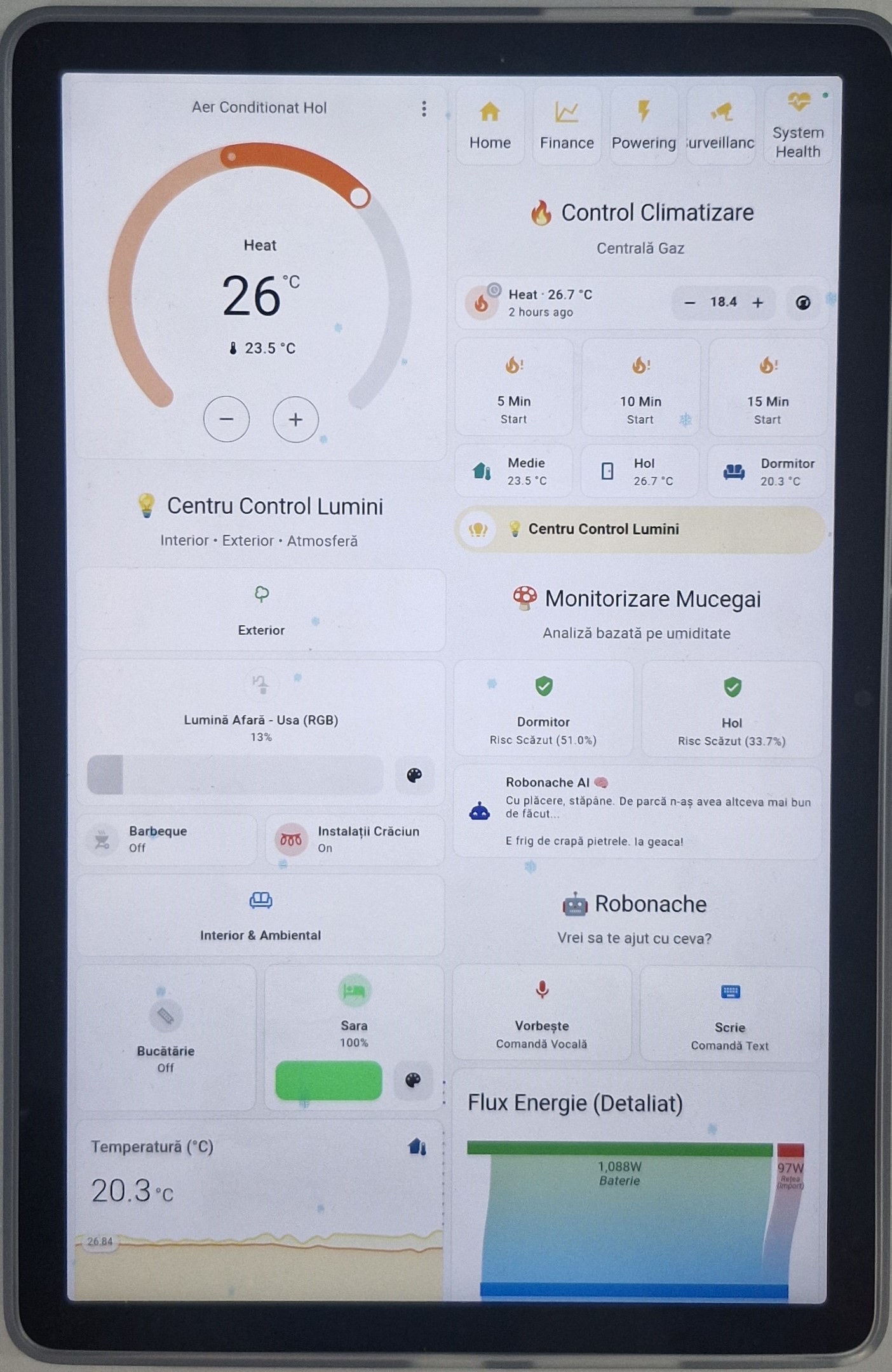 Deschide Pagina → 🌡️Control centrală, aer condiționat, risc mucegai și asistent vocal.